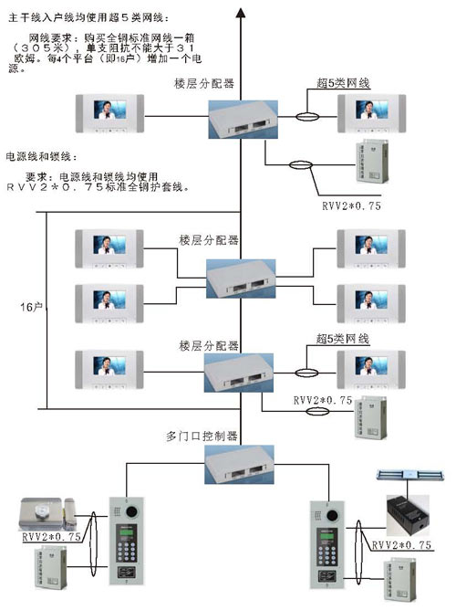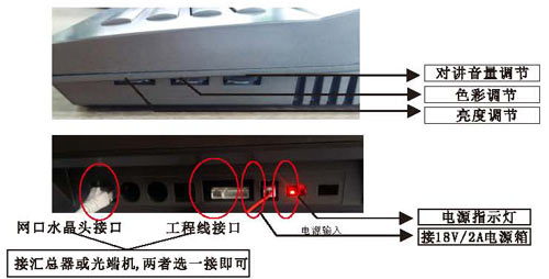 根據(jù)接線圖把單元內(nèi)所有的設(shè)備通上電源,在門口機輸入4位或3位房號后,門口機有提示聲,室內(nèi)分機按接聽后,即可對講。